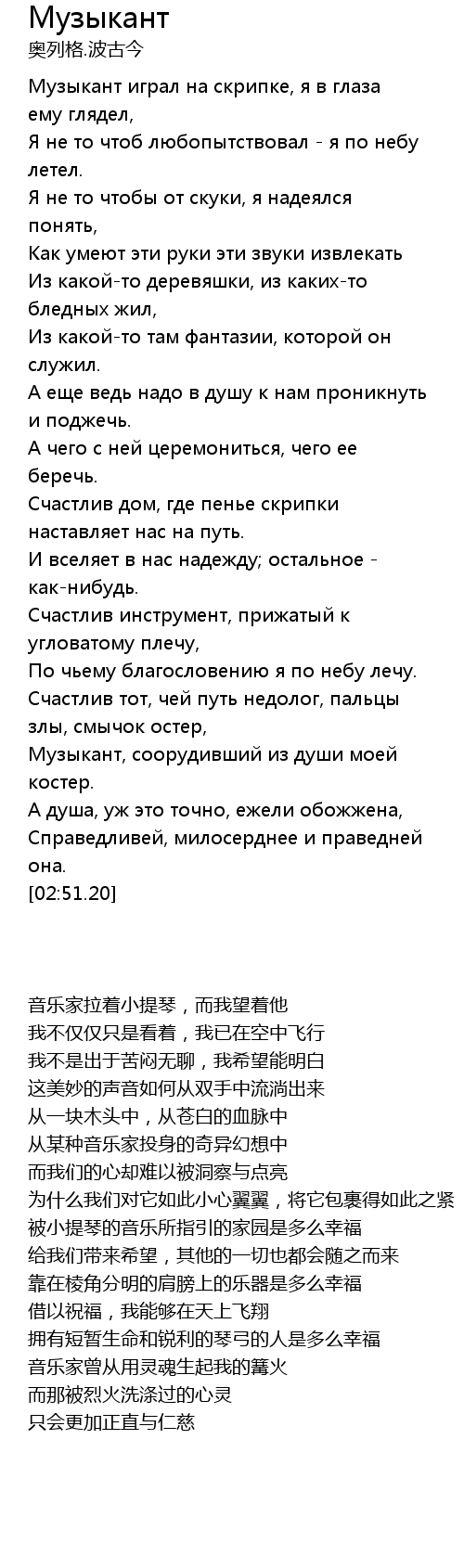 Музыкант играл на скрипке, я в глаза ему глядел, |