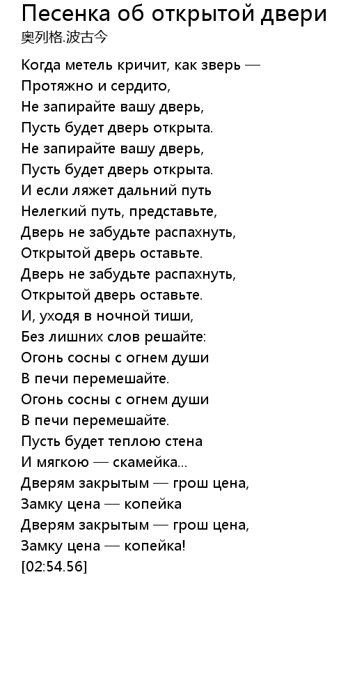 Не запирайте вашу дверь, |