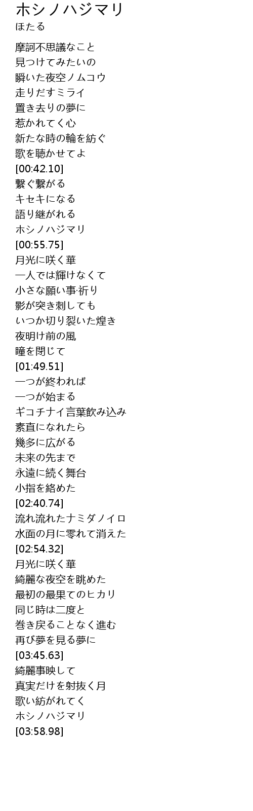 | [03:55.04] | ホシノハジマリ |