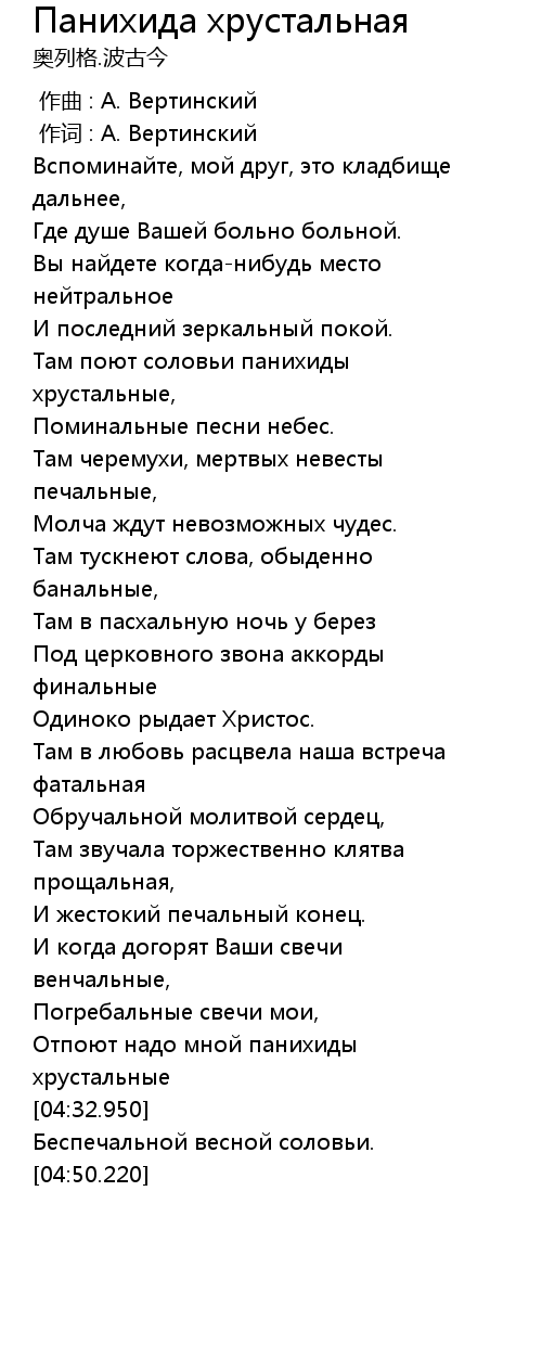 Панихида хрустальная  Lyrics