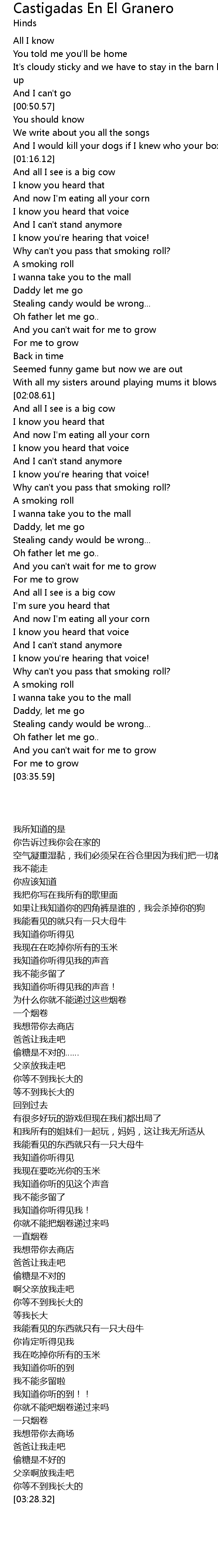 | [00:43.26] | It's cloudy sticky and we have to stay in the barn because we screw it up |
