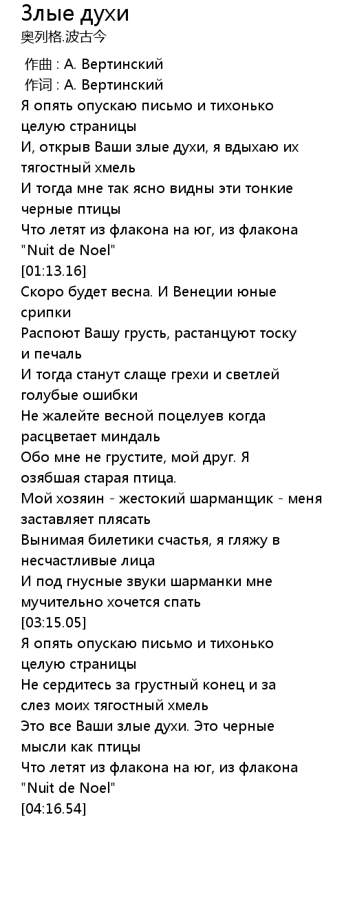 作词 : А. Вертинский |