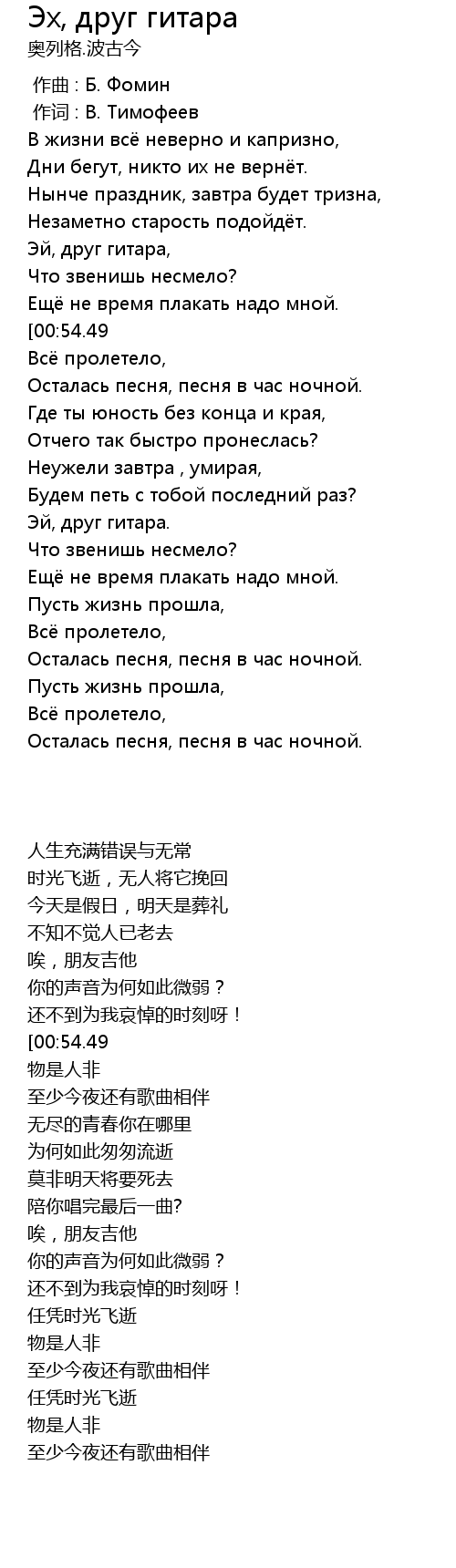 Эх, друг гитара , Lyrics