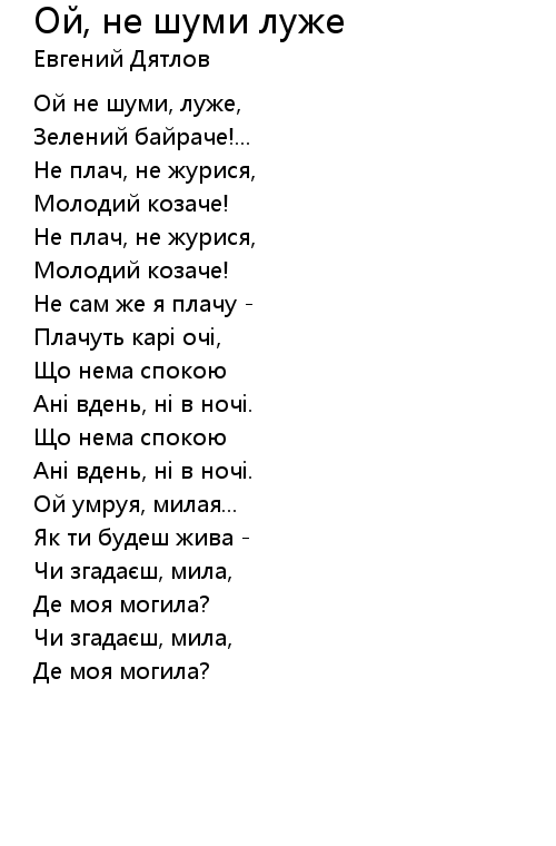 Ой не шуми, луже, |