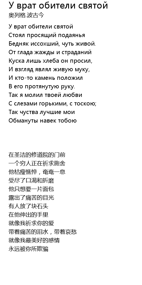 | Song | У врат обители святой |