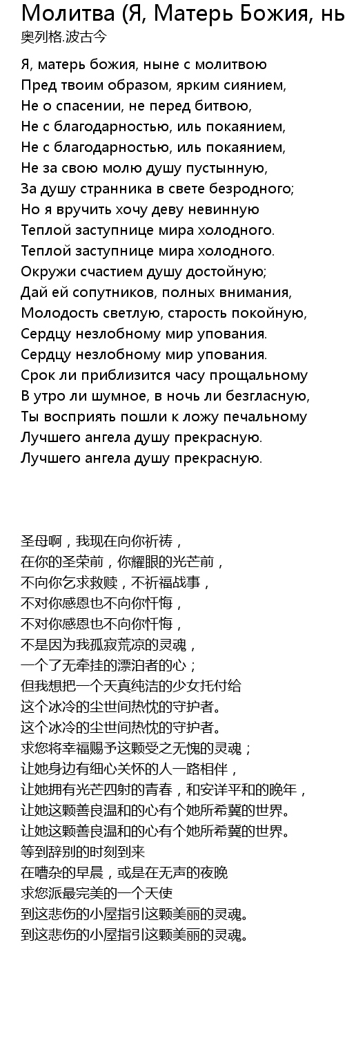 Я, матерь божия, ныне с молитвою |