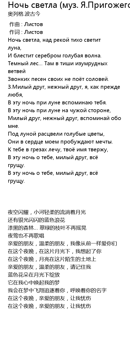 Ночь светла, над рекой тихо светит луна, |