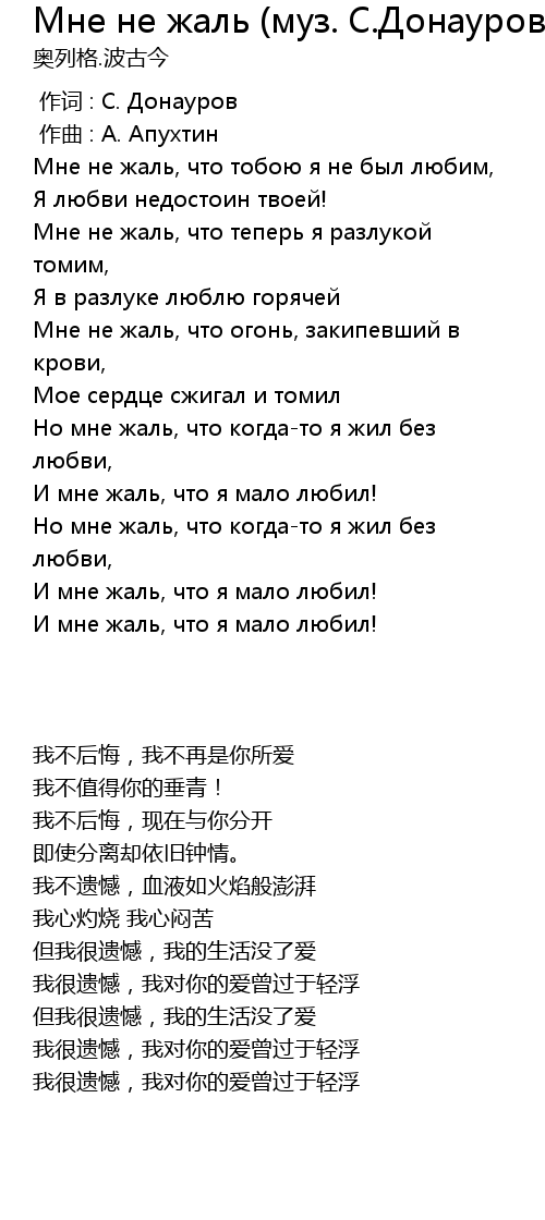 | [00:09.365] | Мне не жаль, что тобою я не был любим, |