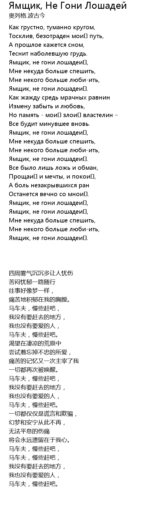 Ямщик, не гони лошадей, |