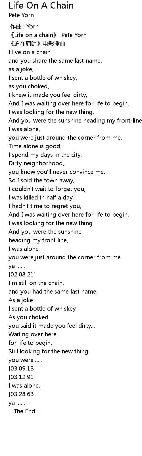 | [00:00.72] | 《Life on a chain》-Pete Yorn |