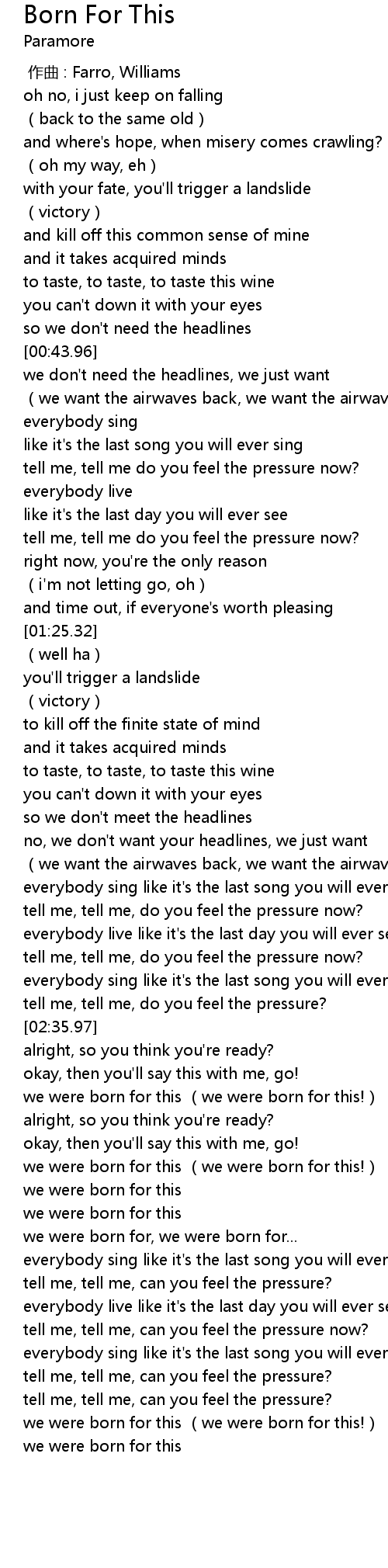 | [03:28.31] | tell me, tell me, can you feel the pressure now? |