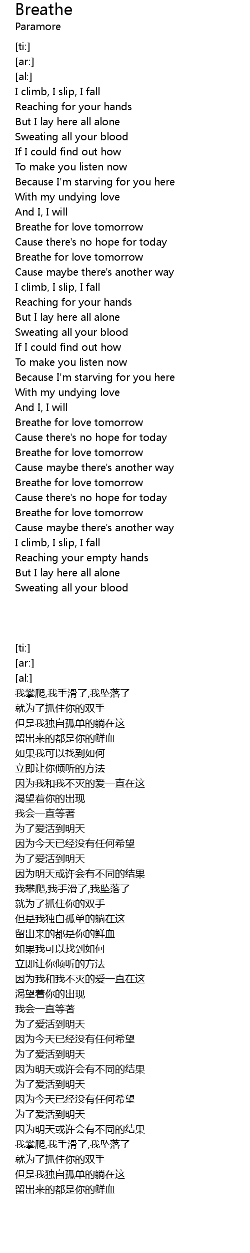 | [02:43.34] | Breathe for love tomorrow |