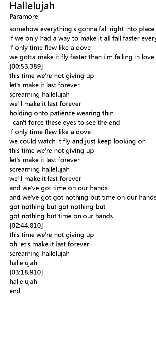 | [00:41.148] | we gotta make it fly faster than i' m falling in love |