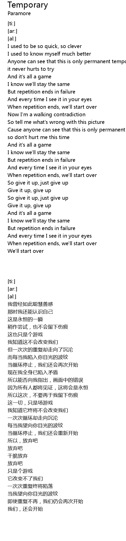 | [01:30.11] | Cause anyone can see that this is only permanent temporary |