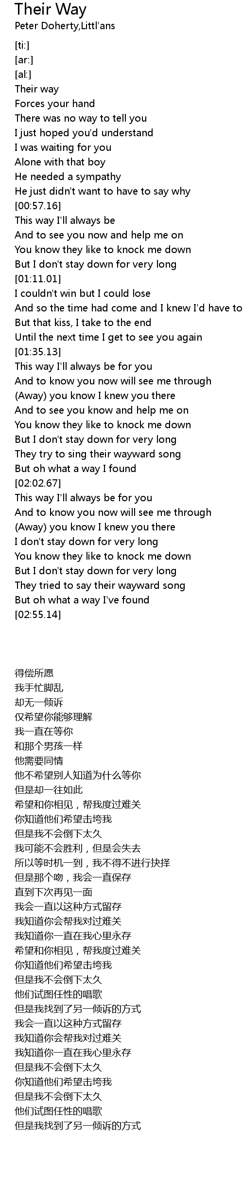 | [00:32.11] | Their way |