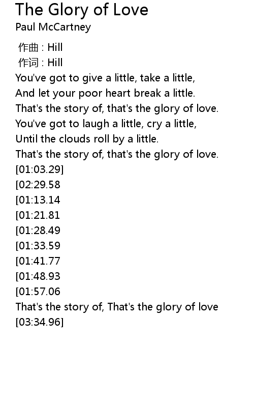 | [03:25.01] | That' s the story of, That' s the glory of love |