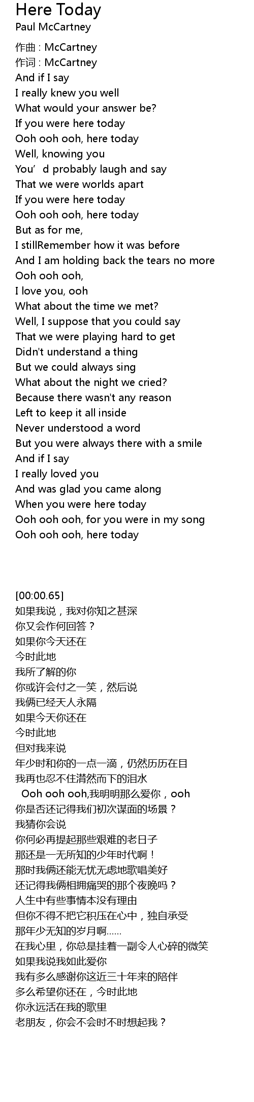 | Ooh ooh ooh, here today |