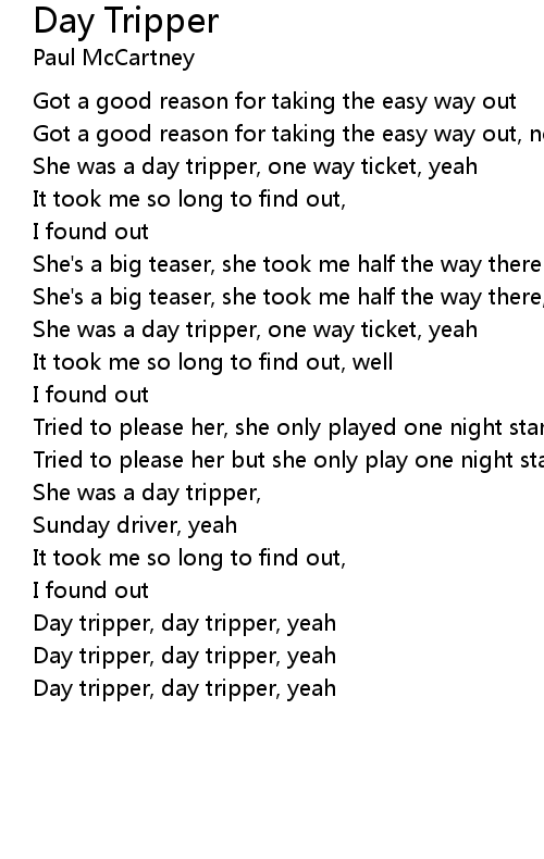 She was a day tripper, one way ticket, yeah