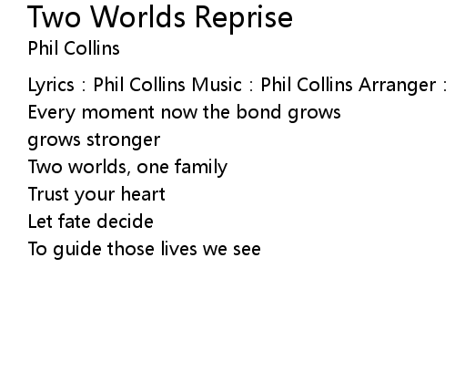 | Lyrics:Phil Collins Music:Phil Collins Arranger:Phil Collins/Mark Mancina | |