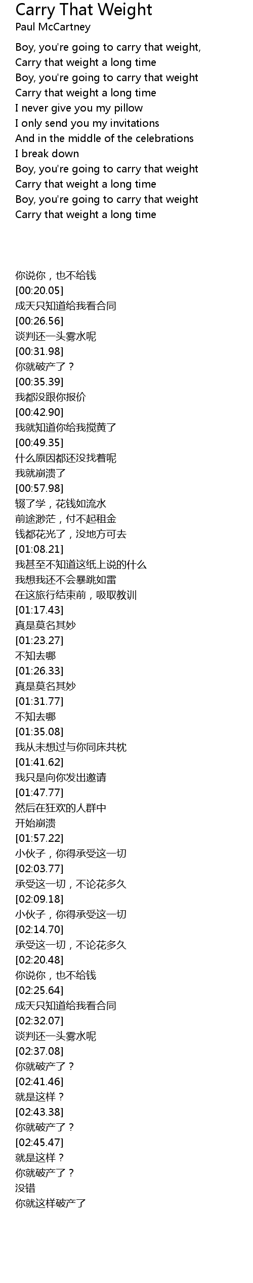 | Carry that weight a long time |