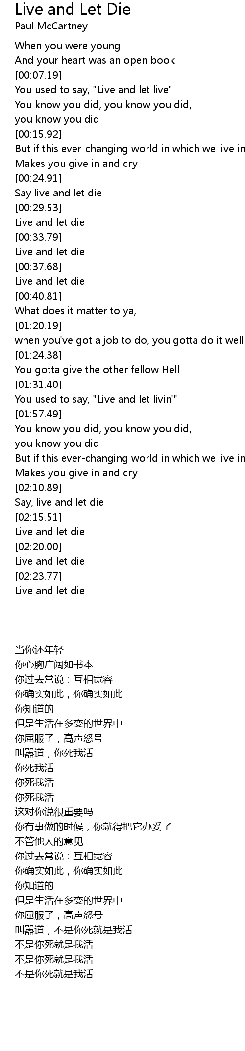 Live and let die |