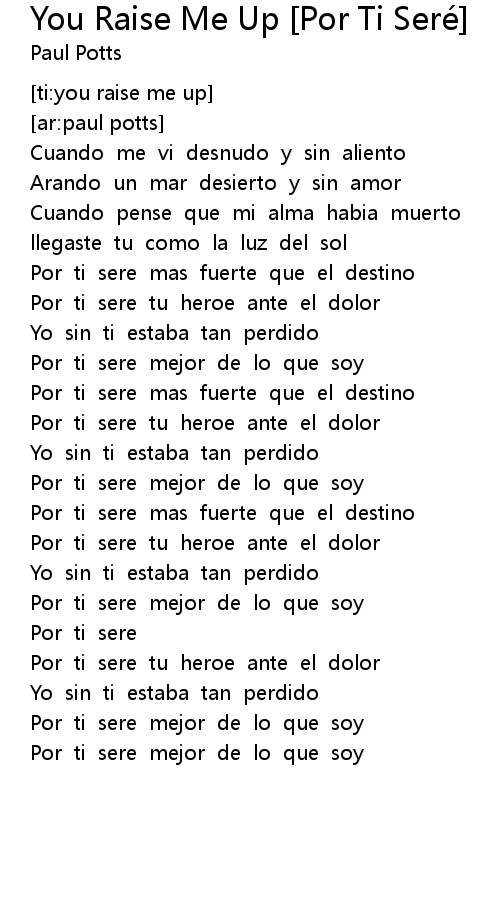 You Raise Me Up Por Ti Sere Lyrics