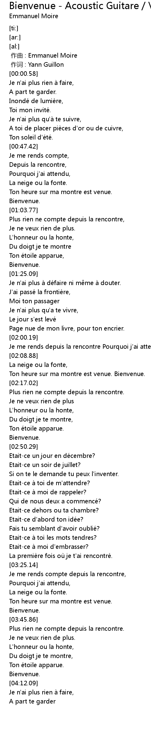 | [00:00.00] | zuo qu : Emmanuel Moire |