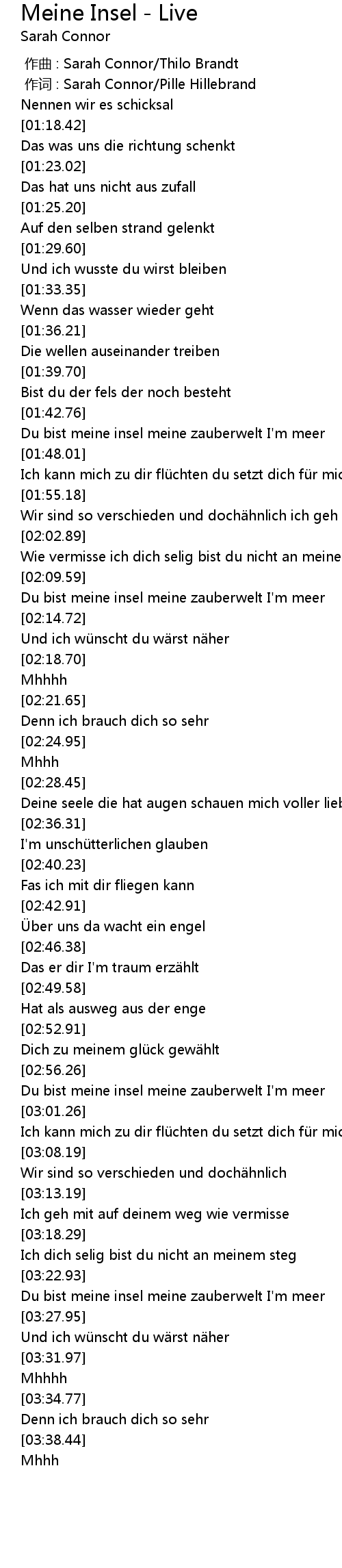 | [02:10.33] | Du bist meine insel meine zauberwelt I'm meer |