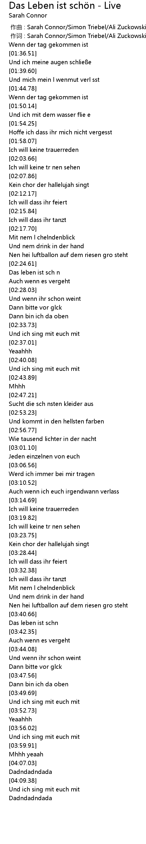 | [00:01.00] | 作词 : Sarah Connor/Simon Triebel/Ali Zuckowski |