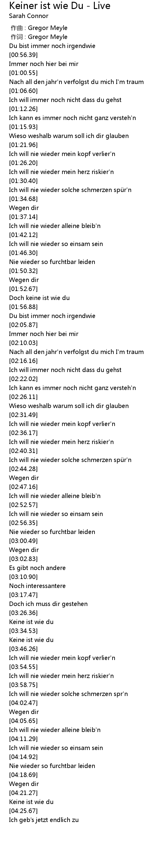 | [00:01.00] | 作词 : Gregor Meyle |