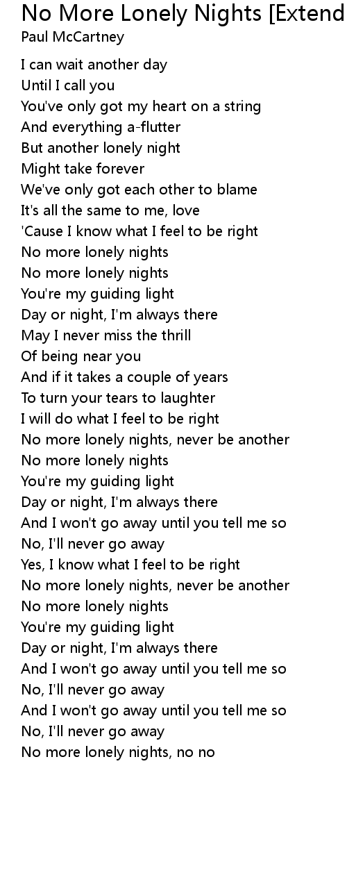 No more lonely nights |