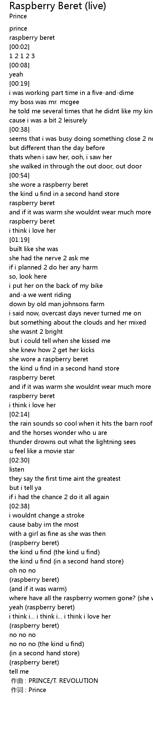 | [00:00.00] | 作曲 : PRINCE/T. REVOLUTION |