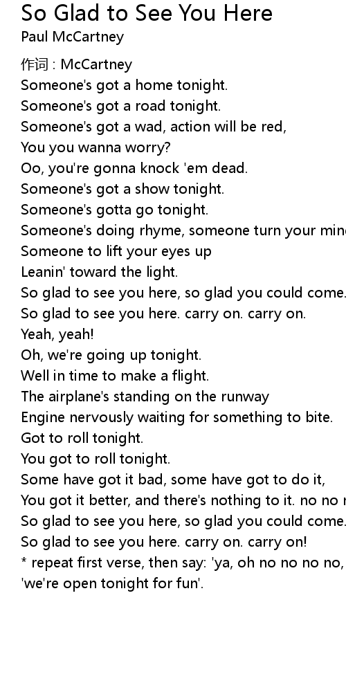 | So glad to see you here, so glad you could come. (yeah!) | |