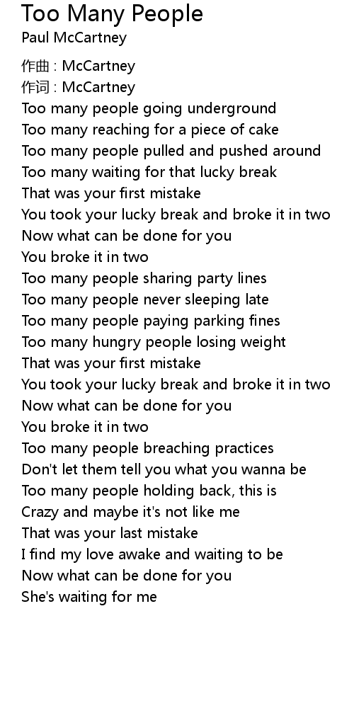 | Song | Too Many People |
