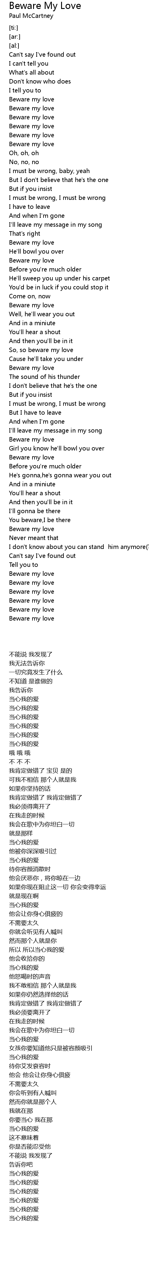 [01:19.17] Beware my love