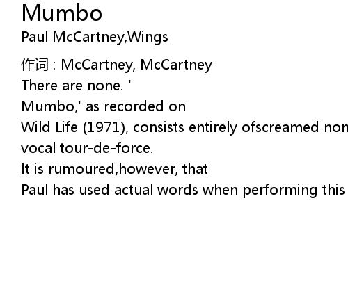 | Mumbo,' as recorded on | |