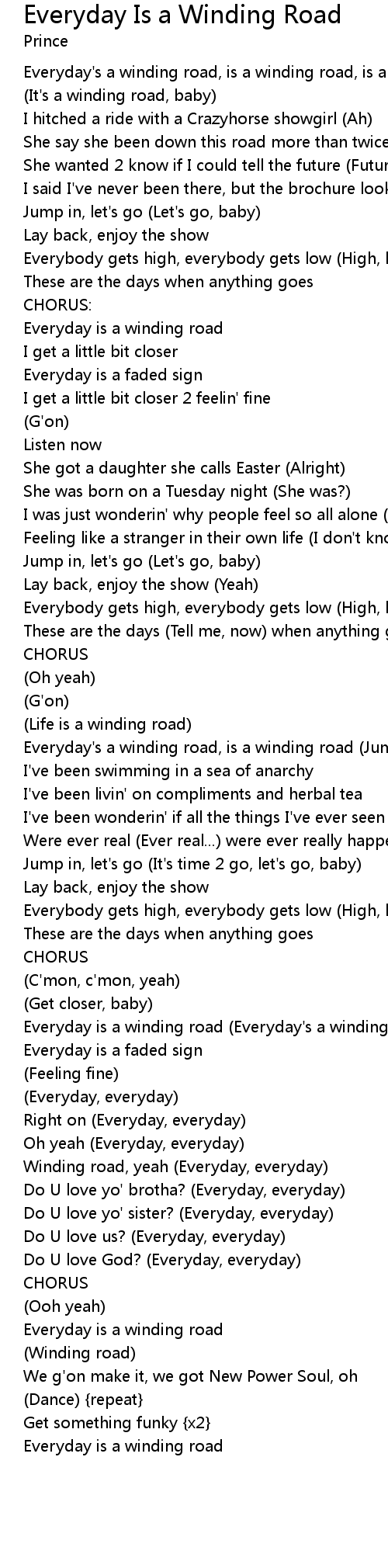 Everyday's a winding road, is a winding road, is a winding road, ho |