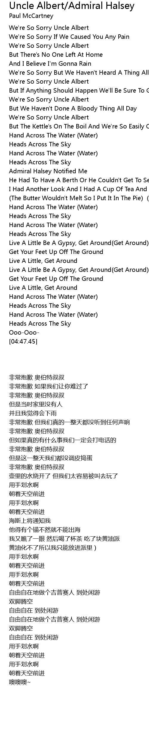 | [01:41.94] | We' re So Sorry Uncle Albert |
