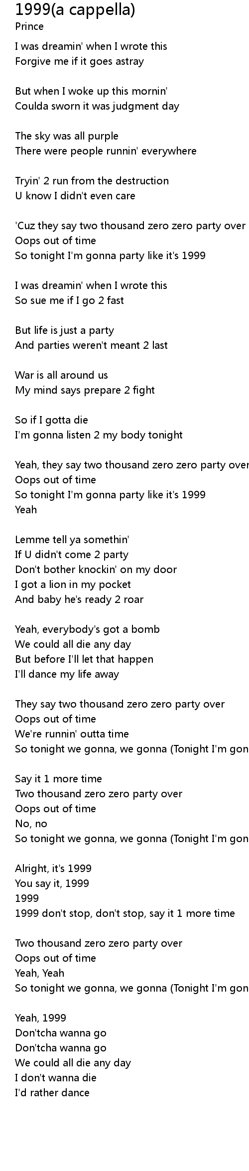 So tonight we gonna, we gonna (Tonight I'm gonna party like it's 1999) |