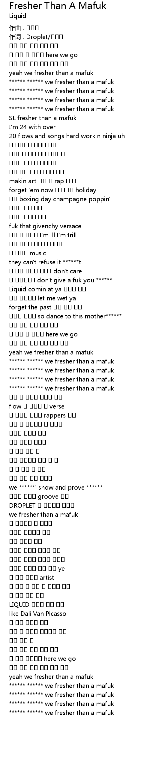| Song | Fresher Than A Mafuk |