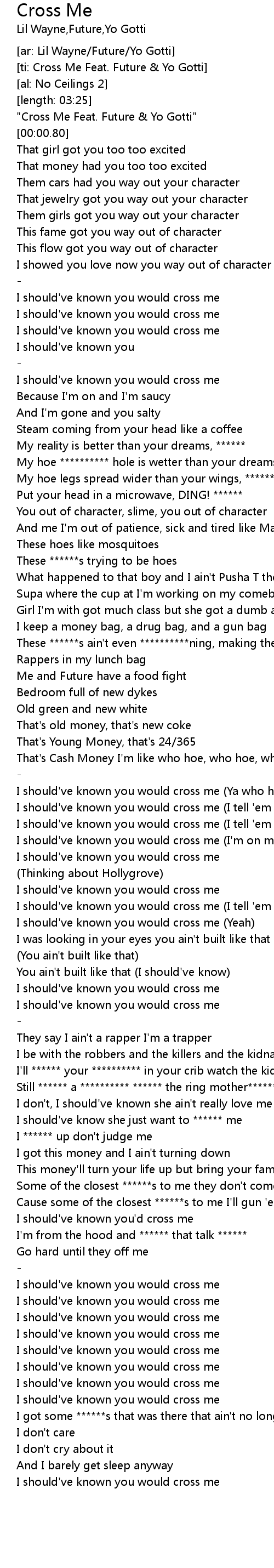 | [ti: Cross Me Feat. Future & Yo Gotti] | |