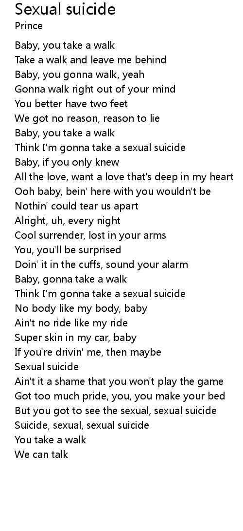 Think I'm gonna take a sexual suicide |