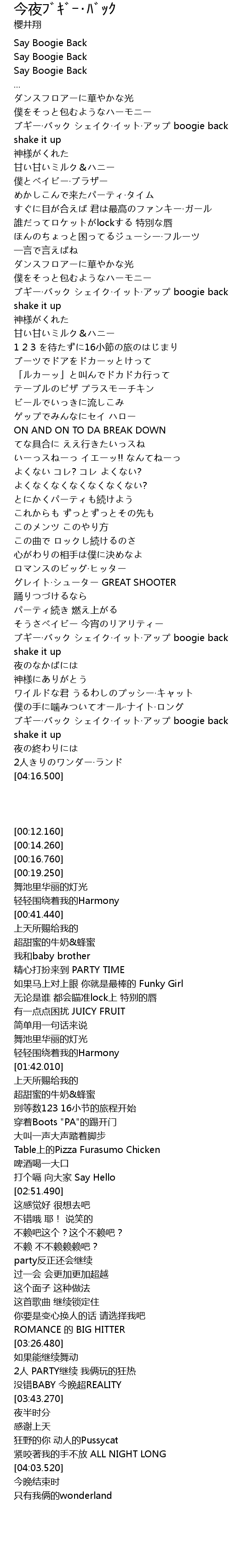 | [00:41.440] | ブギー·バック シェイク·イット·アップ boogie back shake it up |