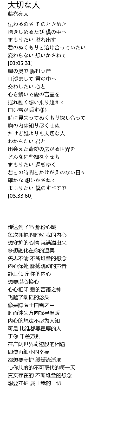 | [03:07.96] | 君との時間とかけがえのない日々 |