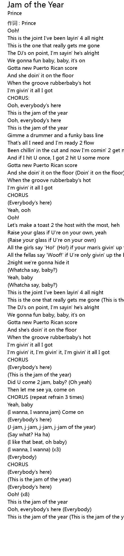 | Did U come 2 jam, baby? Oh yeah | |