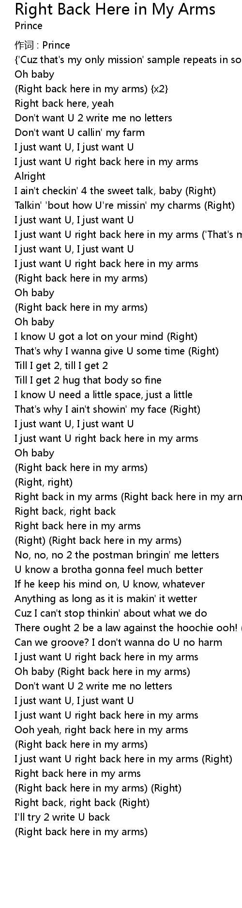 | I just want U right back here in my arms ' That' s my only mission' | |