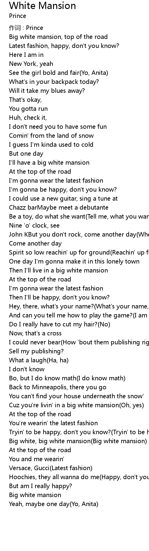 | Cuz you' re livin' in a big white mansion Oh, yes | |