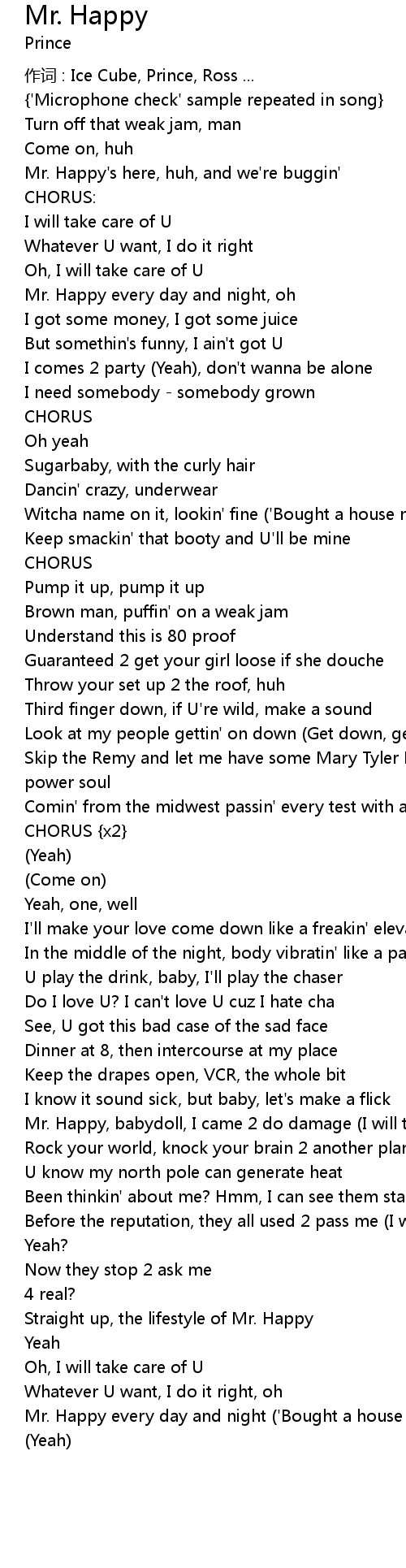 | Mr. Happy every day and night ('Bought a house next 2 Prince') | |