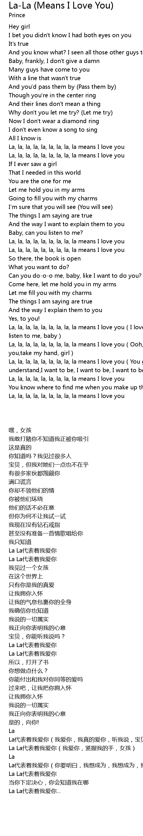 | [02:48] | La, la, la, la, la, la, la, la, la means I love you(I love you,Ooh listen to me, baby) |