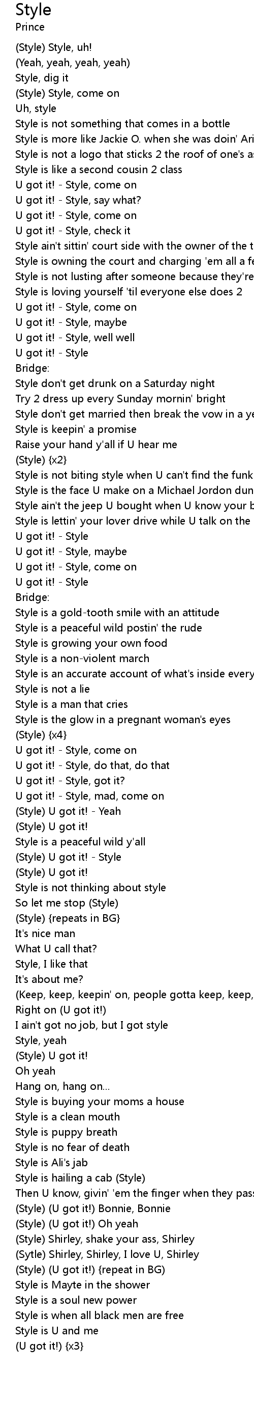 (Style) (U got it!) {repeat in BG)